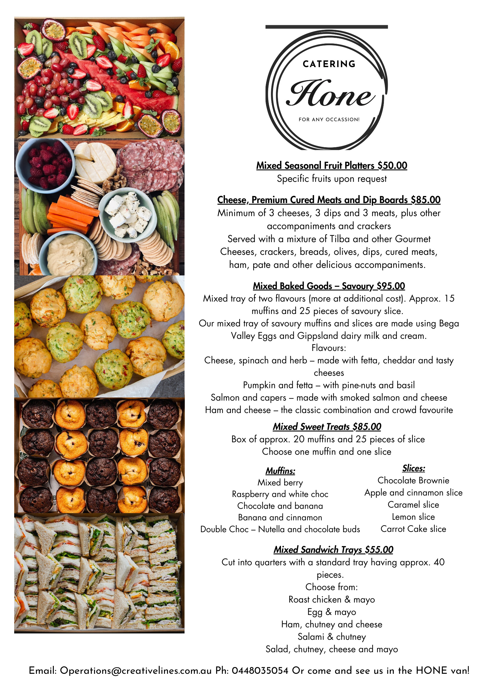 Quality fresh ingredients, a huge variety of local products, and catering options to suit any occasion - all at very affordable prices! Whether you’re planning a corporate gathering, birthday celebration, community event, or casual get-together, Honed on Imlay have your catering needs covered. Our catering packages are designed to showcase the best local produce, delivering fresh, delicious food that brings people together.